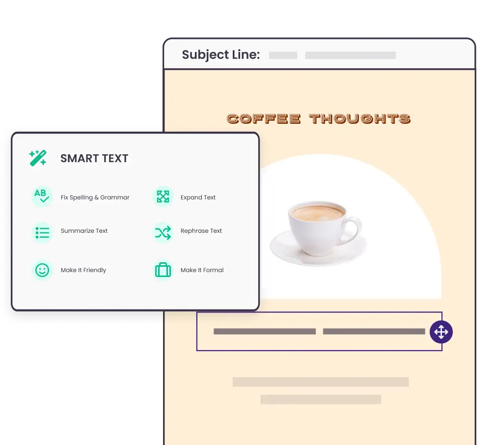 Smart Text will instantly generate short, catchy subject lines tailored to your content and tone.