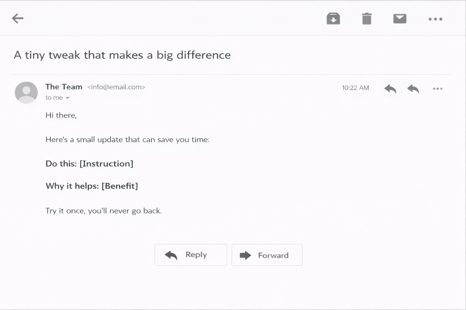 Why it works: Asking a simple question boosts replies, strengthens relationships, and gives you insights you can use in future emails.