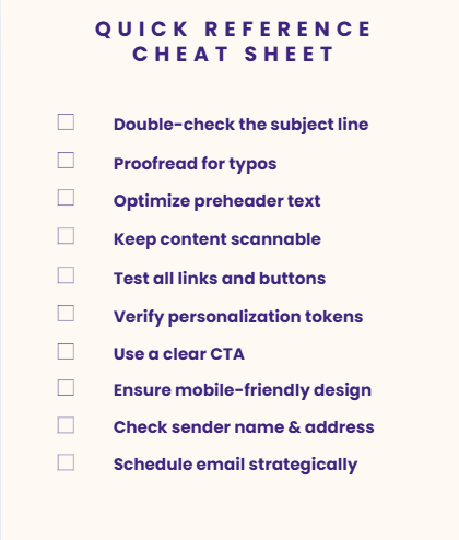Email marketing doesn’t have to be a stressful scramble. By keeping these 10 fast fixes in your toolkit, busy marketers can deliver error-free, high-performing emails without sacrificing quality. Think of this as your quick-reference cheat sheet for avoiding mistakes — and boosting engagement — when deadlines are tight.