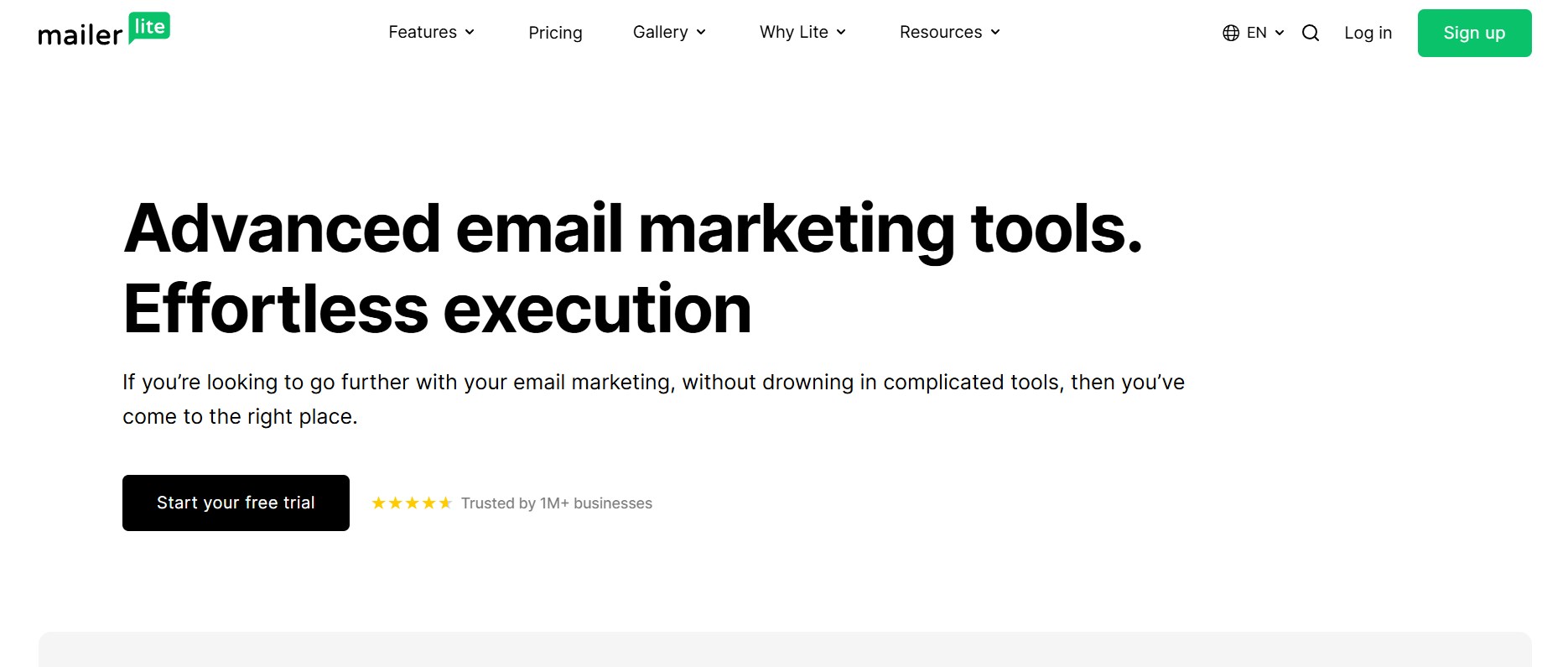 Paid plans start at $9/month. The feature set is solid: automations, landing pages, A/B testing, and pop-up forms are all included. It’s a bit less powerful than Mailchimp at the high end, but for most small businesses, you won’t notice the difference.