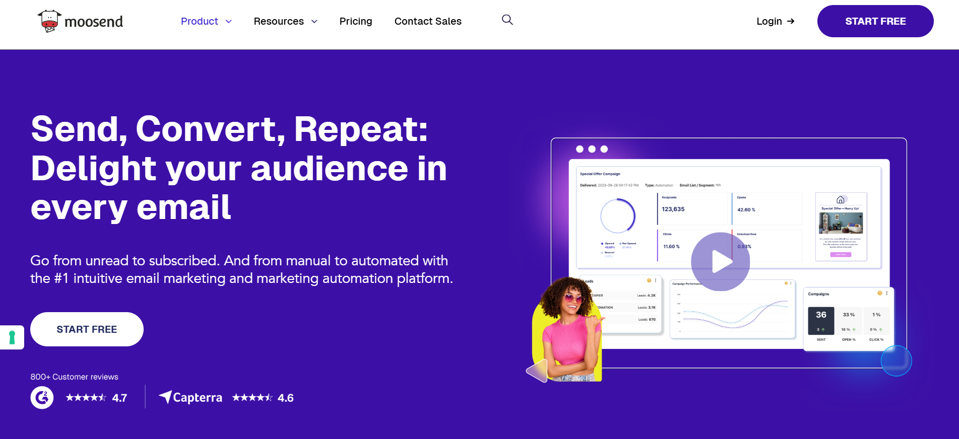 Moosend is one of the more affordable options in this space. Paid plans start at $9/month for up to 500 subscribers, and the automation tools are genuinely good for the price. If you want to set up welcome sequences, re-engagement campaigns, or cart abandonment flows, Moosend punches above its weight.