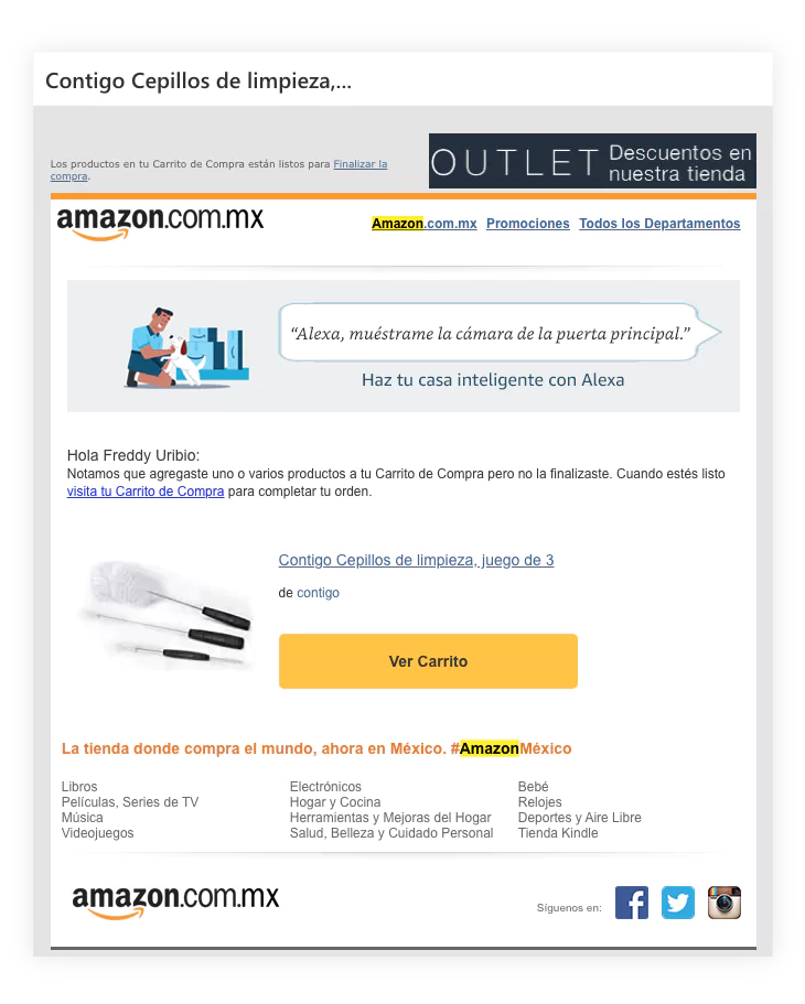 Debes mantenerte en el color verde, y si te da dolor de cabeza pensar en una estrategia de email marketing, esto no es tán complicado como suena, veamos que hace un PRO: Amazon por ejemplo.