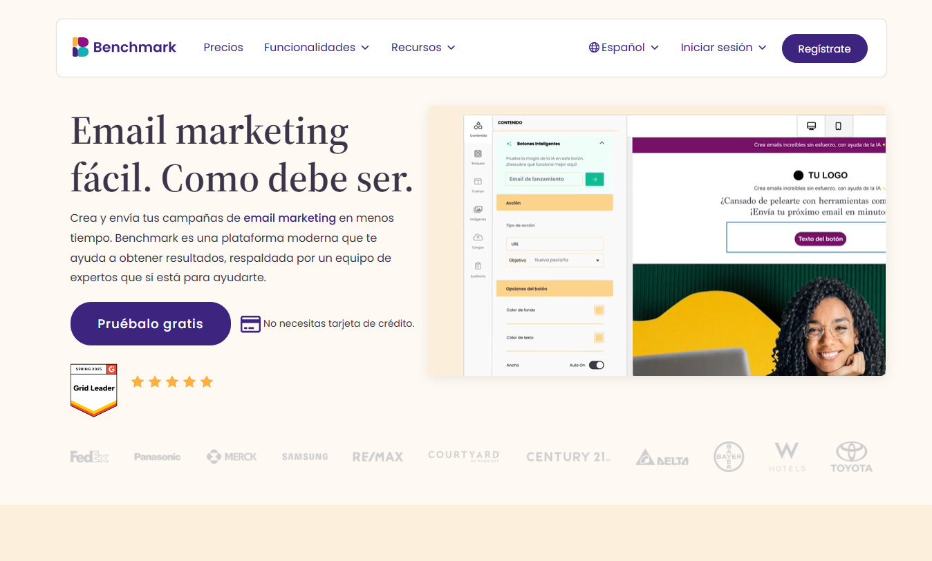 Benchmark incorpora herramientas de IA que ayudan a escribir mejores textos, sugerir líneas de asunto con mayor probabilidad de apertura y generar imágenes de calidad rápidamente, todo integrado directamente en la plataforma.