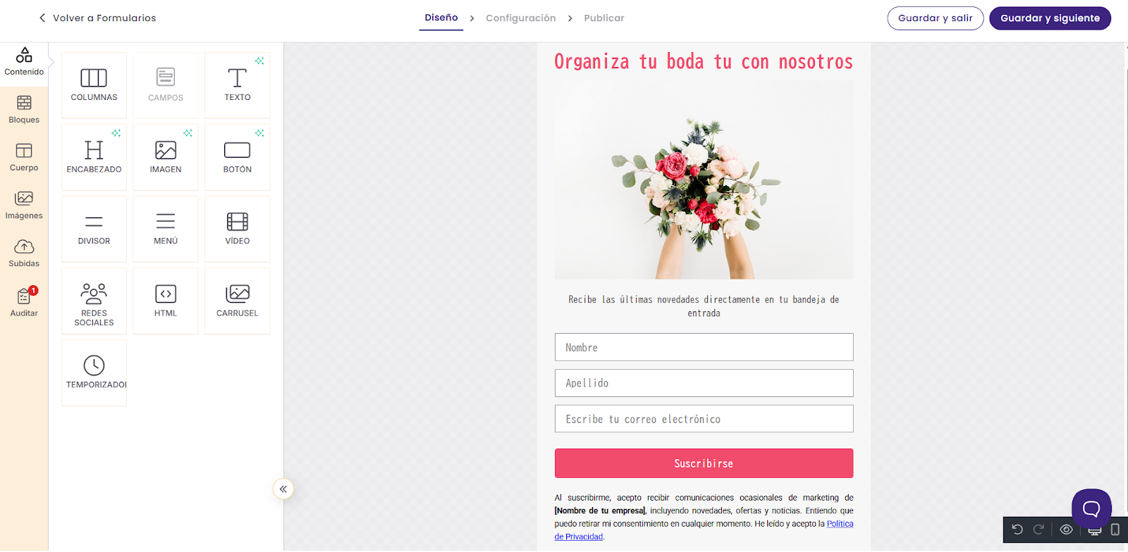 - Personalizar los mensajes de confirmación y de suscripción