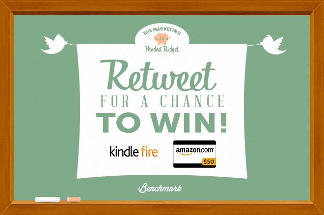 We’re not just giving away a Kindle Fire. No. We’re also giving away a $50 Amazon gift card along with it. What good is an e-reader without some extra moolah to pay for books? RT any post in our Big Marketing on a Modest Budget to Win a Kindle Fire & Amazon Gift Card for Your Small Business.