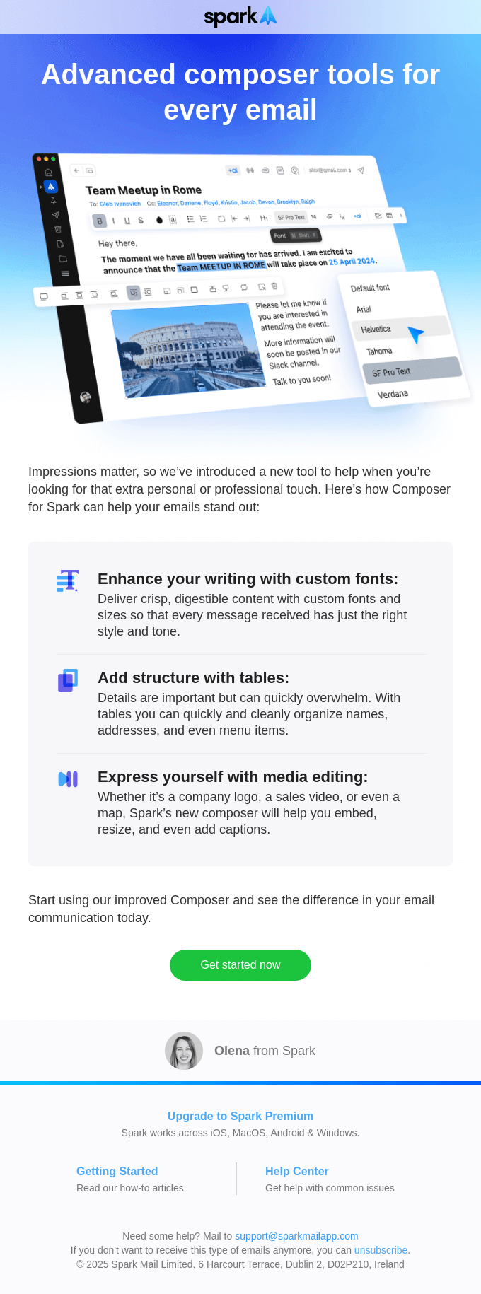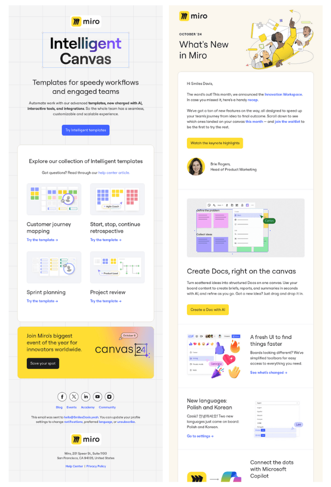 こうした形式は、リリースメールを送る頻度が高くても、デザインチームを介さずに作成できますね。