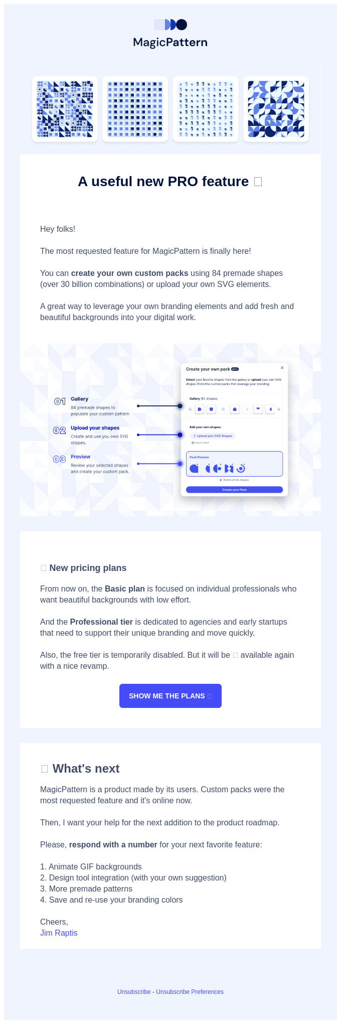 このメールでは、新機能でできることを短いコピーで端的に伝え、アプリユーザーが内容をすぐに把握できる構成になっています。