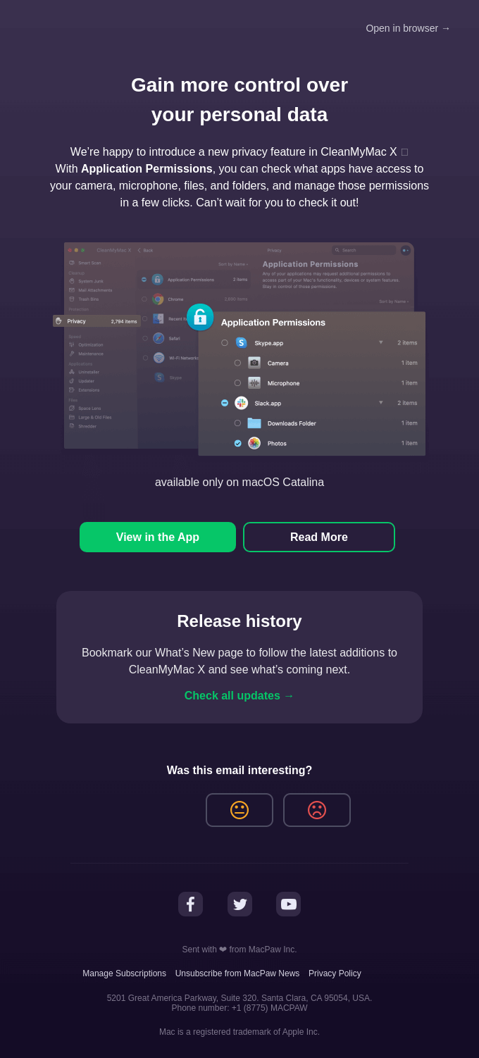 YelpやMacPawと同様に、BtoCメールらしく、アップデートポイントは短くまとめられていますね。