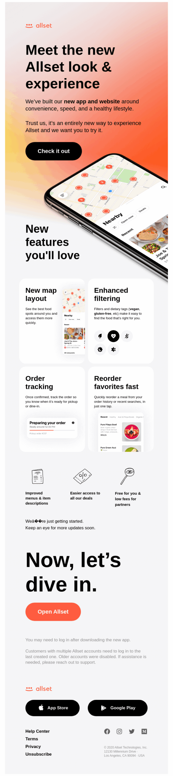 アップデートの具体的な内容は、キャッチコピーの後の文章で、太文字で強調されているキーワードで示されているだけ。詳しくはCTAの先のページで確認できますが、こうしたさらっとしたスマートなコミュニケーションがBtoCらしいメールです。