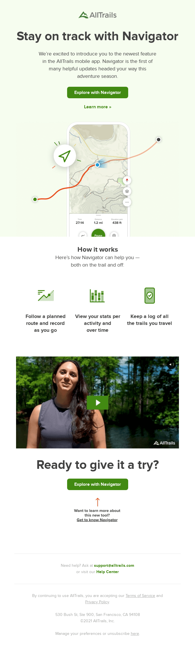 新しくリリースした機能が「ナビゲーション機能」だと一目でわかるように、UIとイラストを組み合わせています。実際の利用イメージが持てる、とても良いデザインです。